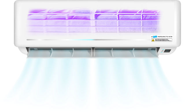 LED UV terdiri dari 8 bead UV-A dan 2 bead UV-C yang ditempatkan mengarah ke Filter Fotokatalis di dalam AC. Sinar UV-A yang dominan mengaktivasi Fotokatalisis pada filter, sedangkan Sinar UV-C mengurangi penumpukan organisme di dalam AC serta tidak menghasilkan Ozon di udara