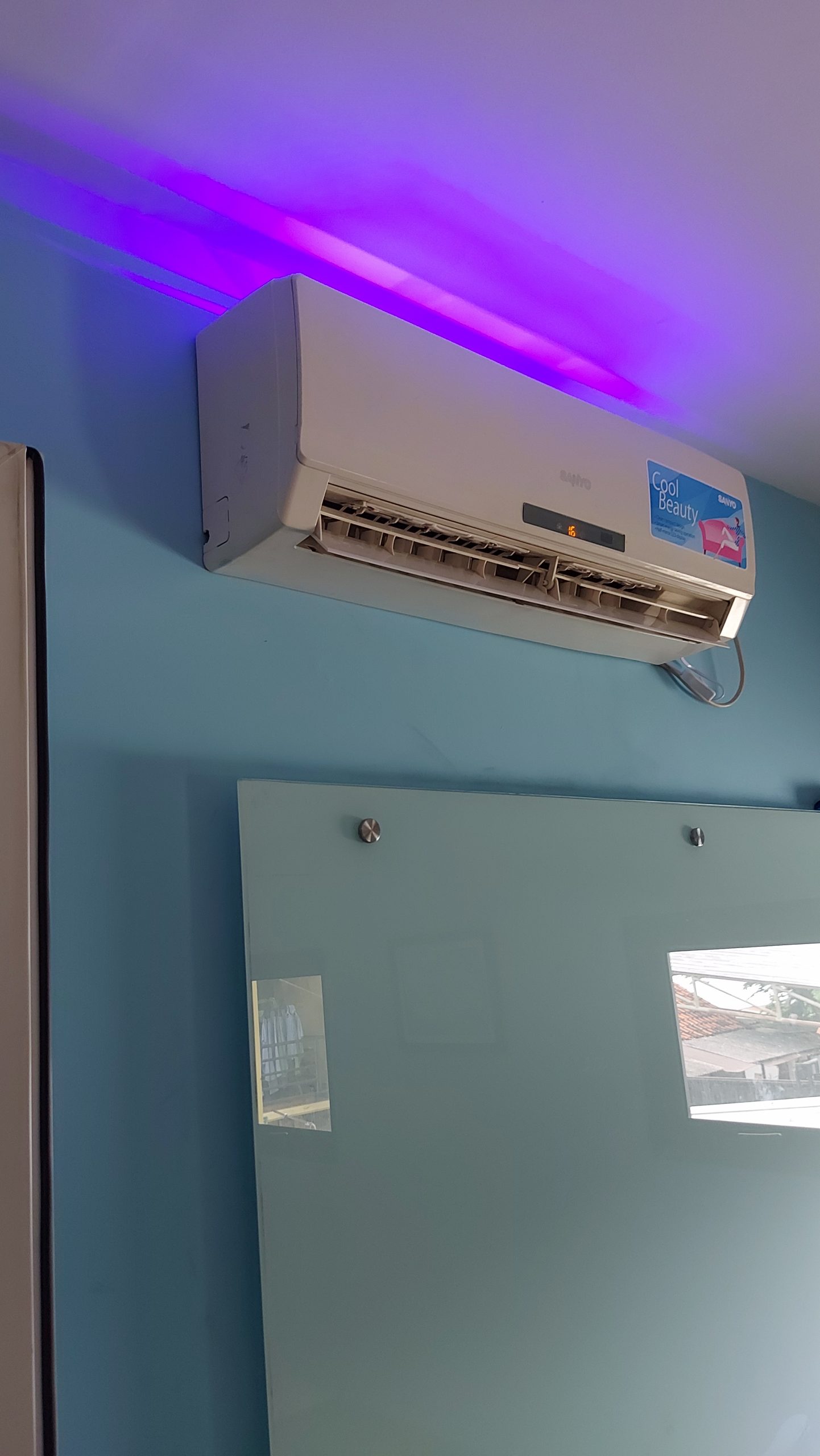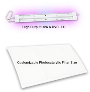 Purifikasi dan sterilisasi udara dari bakteri dan virus dengan menggunakan satu perangkat kecil yang ditempatkan di dalam AC Split dan dengan aktivasi Sinar UV-A & UV-C dari LED yang hanya membutuhkan daya 10 watt dan dengan harga filter fotokatalis pengganti hanya 1/5 dari harga filter umum