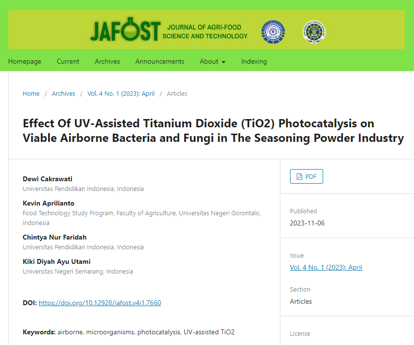 Teknologi Photocatalytic Oxidation digunakan untuk meningkatkan kualitas udara dalam ruangan (Indoor Air Quality) dengan cara mengeliminasi gas polutan, pathogen dan berbagai mikroorganisme